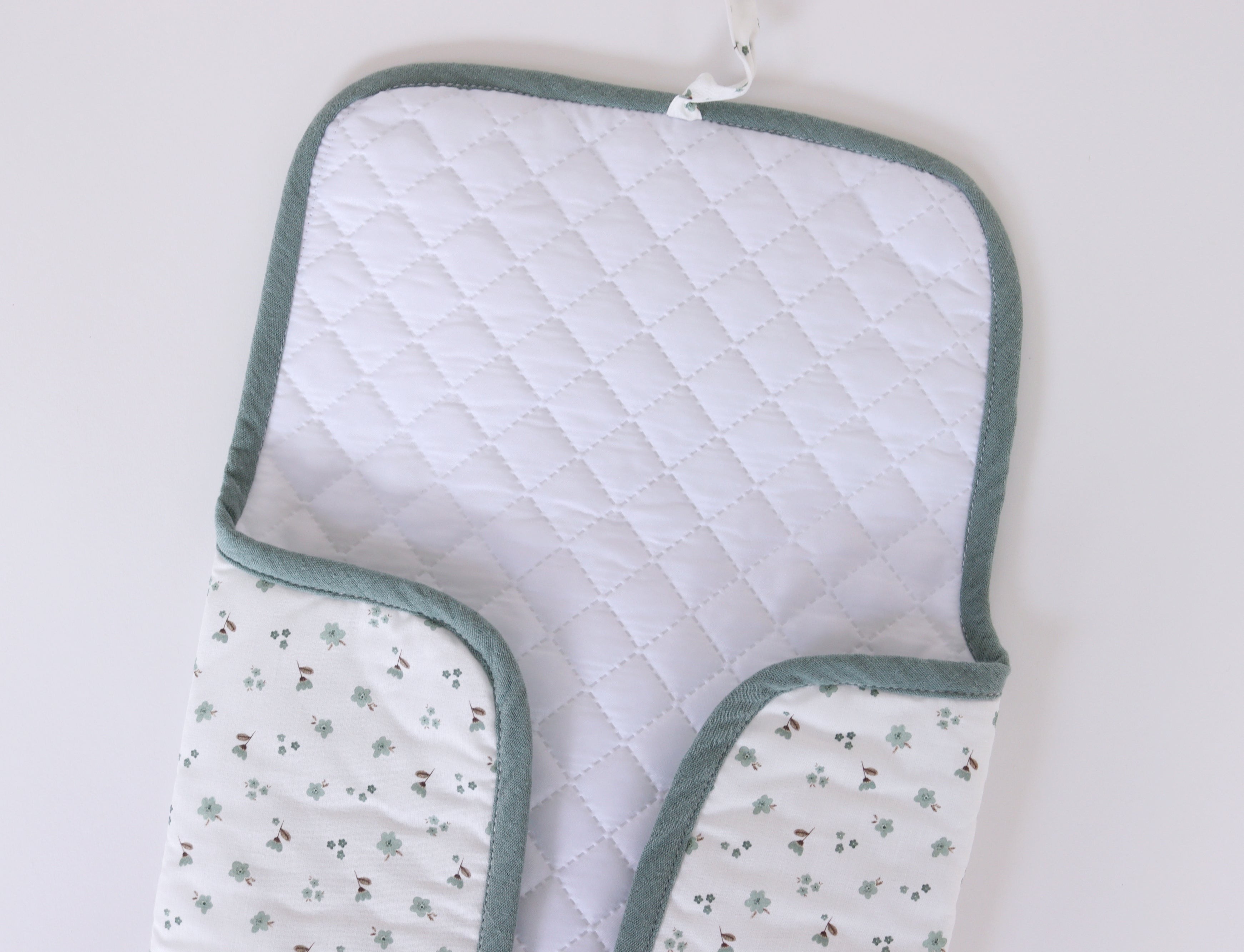 Cambiador de paseo Camila en algodón 100% con interior impermeable. Diseño de florecitas. Cómodo y fácil de plegar.