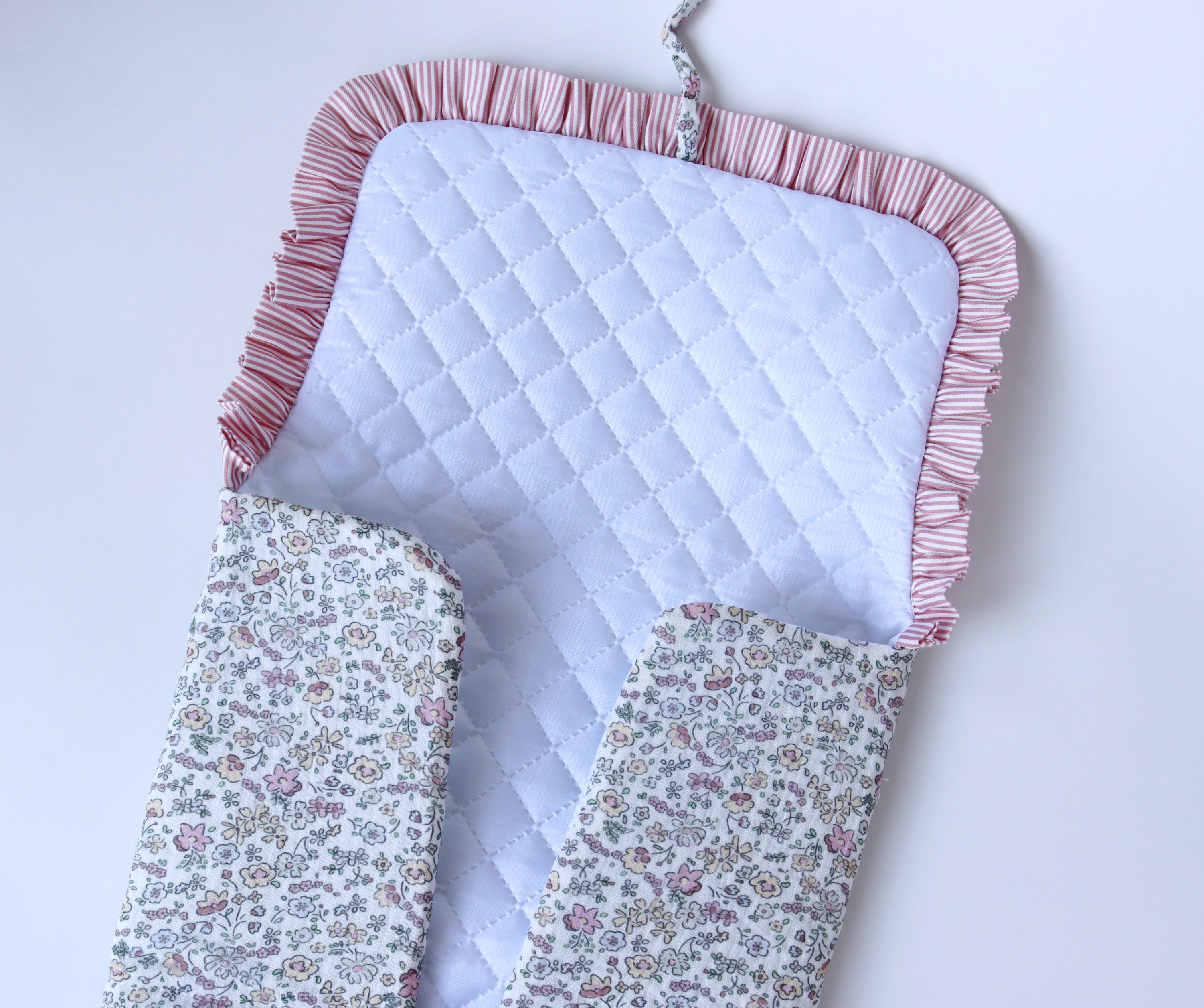 Cambiador de paseo Leyre confeccionado en algodón 100% con el interior impermeable. Cómodo y fácil de plegar. Impermeable pero transpirable.