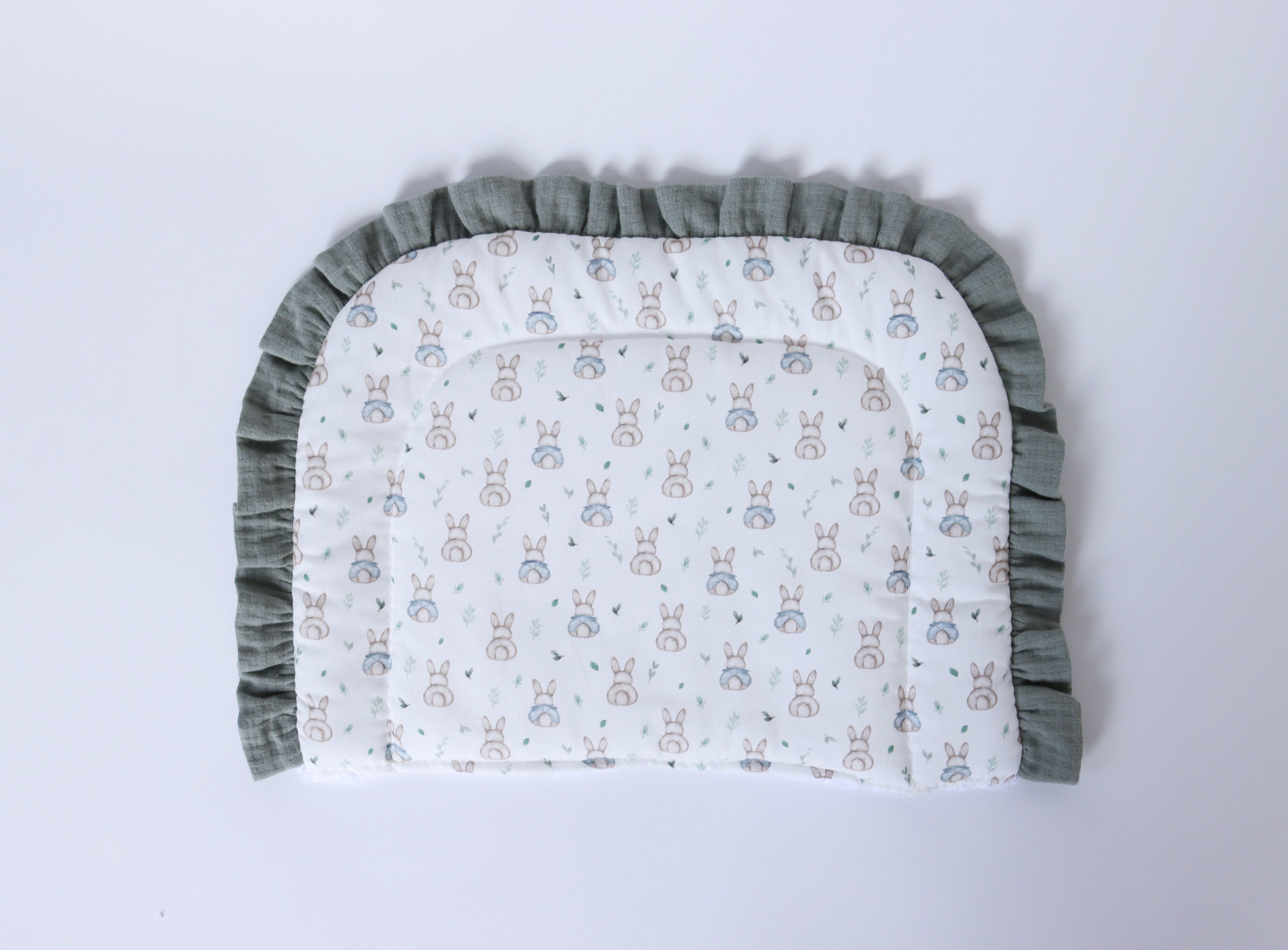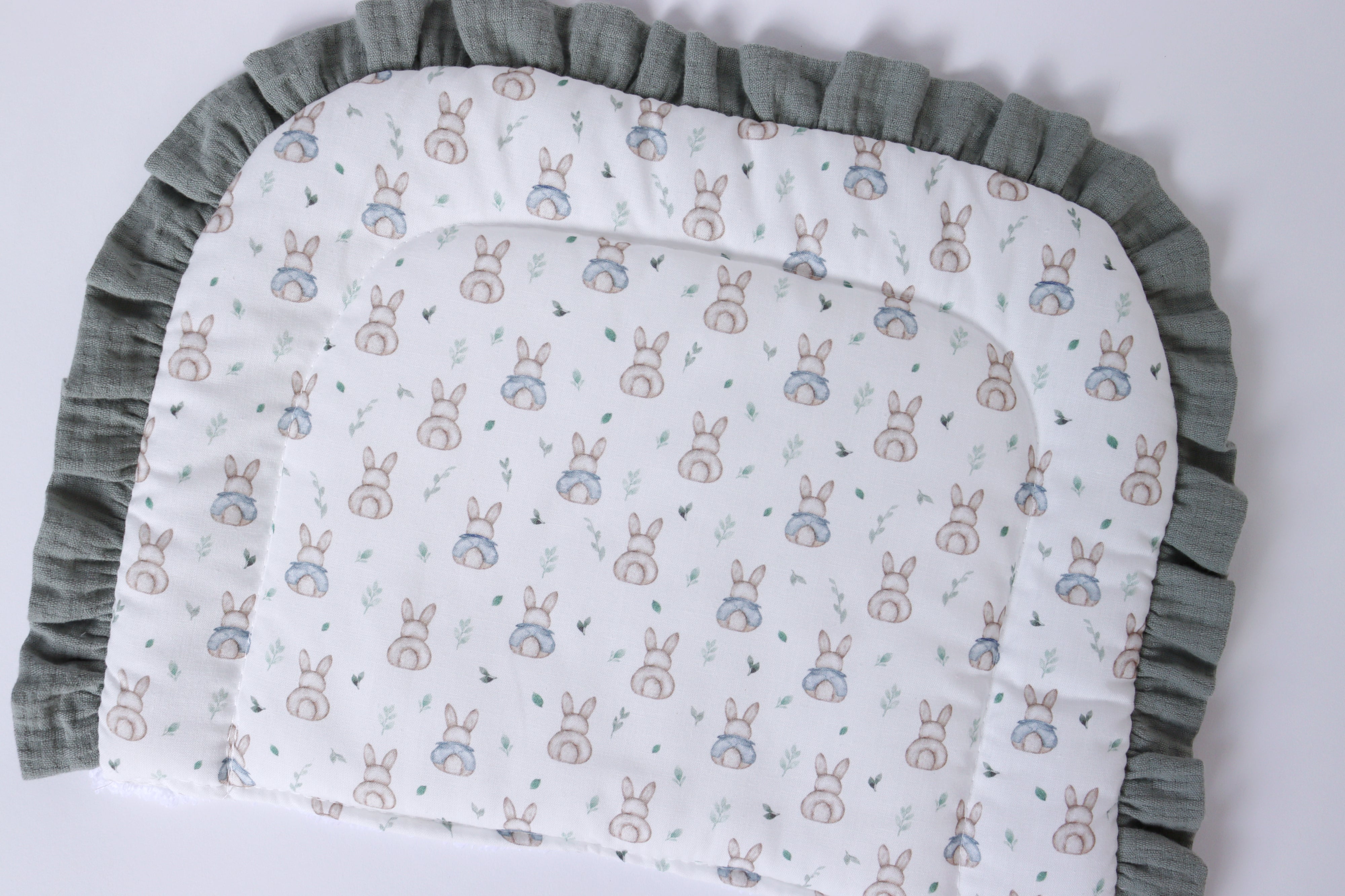 Salvababitas Oliver verde. Perfecto para mantener limpio y seco el cabezal del moisés, cuna o cochecito. Protege de babitas y posibles reflujos. De rizo por la parte de detrás.