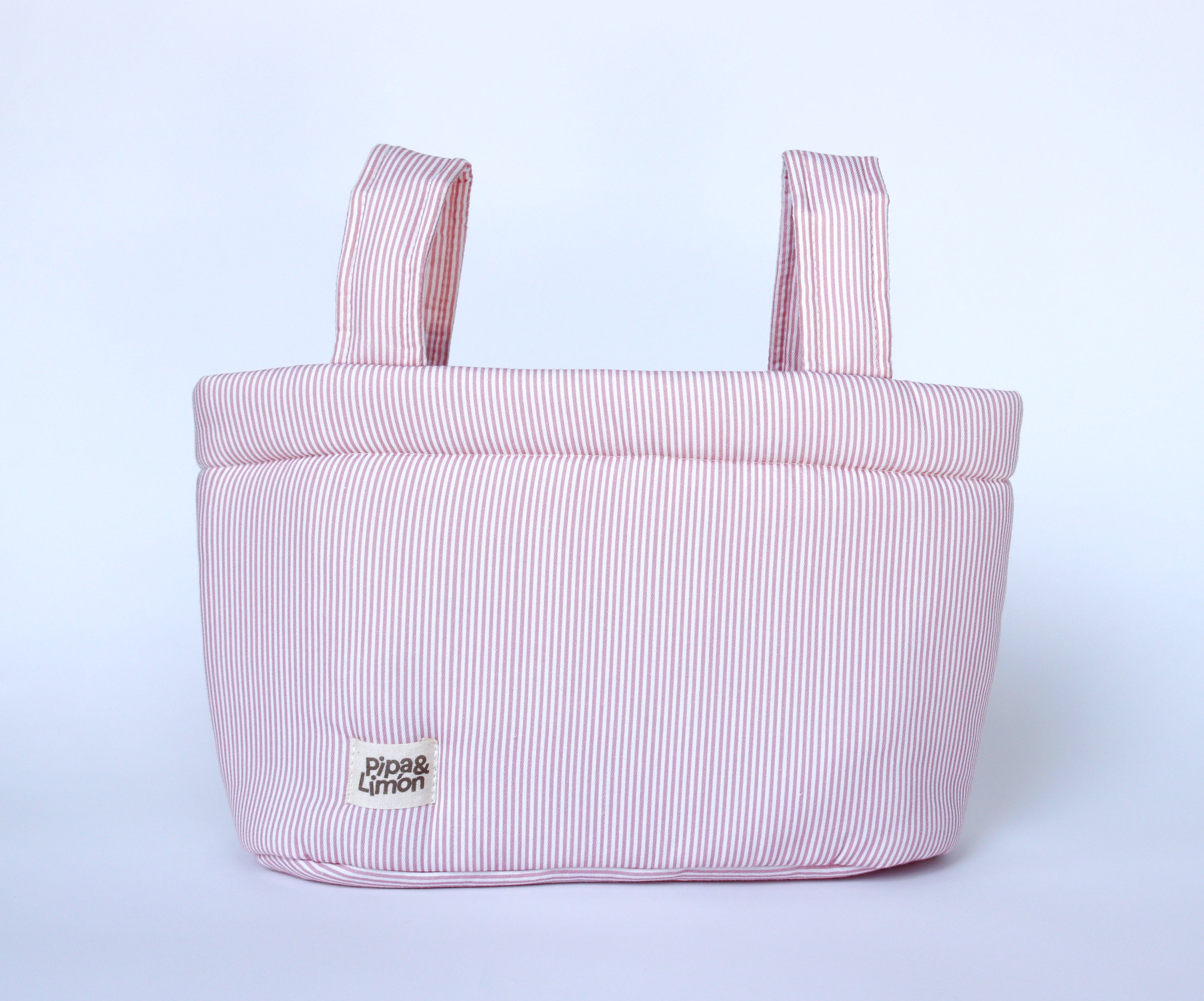 Mini bag de la colección Pink Stripes. Tejido rayitas rosa 100% algodón.